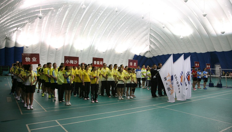15日上午9時,開幕式開始,伴隨著雄壯的運動員進行曲,各參賽隊伍在三名護旗手的帶領(lǐng)下,邁著矯健的步伐列隊進場。開幕式由特發(fā)羽協(xié)張心亮秘書長主持,地產(chǎn)公司陳寶杰總經(jīng)理代表承辦單位致歡迎詞。集團財務(wù)總監(jiān)、特發(fā)羽協(xié)栗淼會長致辭。栗總監(jiān)首先轉(zhuǎn)達集團張建民總經(jīng)理對參賽隊員、裁判員以及組委會全體人員的問候,對地產(chǎn)公司承辦本次大賽表示感謝,并祝愿大賽取得圓滿成功。栗總表示,特發(fā)羽毛球運動作為集團的主要運動項目,近年來得到蓬勃發(fā)展,開展紅火,特發(fā)羽協(xié)代表隊剛參加首屆公交工會羽毛球大賽并取得優(yōu)異成績。我們集團在過去一年,在董事會、經(jīng)營班子的正確領(lǐng)導下,利潤總額達到8億元,今年預算能達到10億元,集團發(fā)展也越來越紅火。栗總同時也感謝地產(chǎn)公司為集團經(jīng)濟發(fā)展所做出的貢獻,為舉辦本次羽毛球大賽作出的努力,也衷心祝愿和平里二期開盤大賣。講話結(jié)束后,栗總宣布羽毛球大賽開幕。