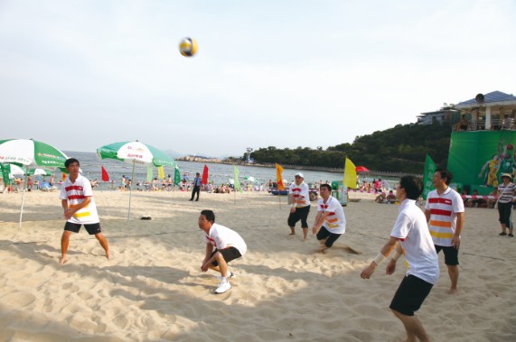 這是一場(chǎng)別開(kāi)生面的運(yùn)動(dòng)會(huì),更是一場(chǎng)歡樂(lè)的聚會(huì)。比賽正式開(kāi)始。首先進(jìn)行的項(xiàng)目是沙灘排球賽。比賽經(jīng)抽簽分成兩組:公司一隊(duì)對(duì)陣公司二隊(duì),企業(yè)一隊(duì)對(duì)陣企業(yè)二隊(duì)。運(yùn)動(dòng)員們盡力施展拿手球技:上手飄球,飛身墊球,魚(yú)躍救球……靈活的步伐,密切的配合,高超的球技,好一幅生龍活虎的競(jìng)賽畫(huà)卷,不禁使人頓覺(jué)排球飛處硝煙彌漫。經(jīng)過(guò)激烈較量,公司一隊(duì)和企業(yè)二隊(duì)分別以2:0戰(zhàn)勝小組對(duì)手進(jìn)入決賽。正是“棋逢對(duì)手,將遇良才”。公司一隊(duì)可謂是團(tuán)結(jié)和諧、經(jīng)驗(yàn)豐富、作風(fēng)嚴(yán)謹(jǐn)、敢打敢拼;企業(yè)二隊(duì)則是特別能吃苦、特別能戰(zhàn)斗,意志頑強(qiáng)、作風(fēng)硬朗。決賽精彩紛呈,競(jìng)爭(zhēng)激烈。賽場(chǎng)上運(yùn)動(dòng)員全力以赴、奮勇拼搏,賽場(chǎng)外觀眾連連拍手叫好。企業(yè)二隊(duì)雖然屢有扭轉(zhuǎn)乾坤、力挽狂瀾之好球,但最終還是不敵素有“王牌之師”稱(chēng)號(hào)的公司一隊(duì)。公司一隊(duì)?wèi){借實(shí)力獨(dú)占鰲頭。