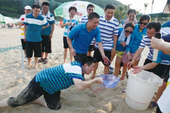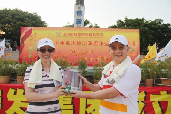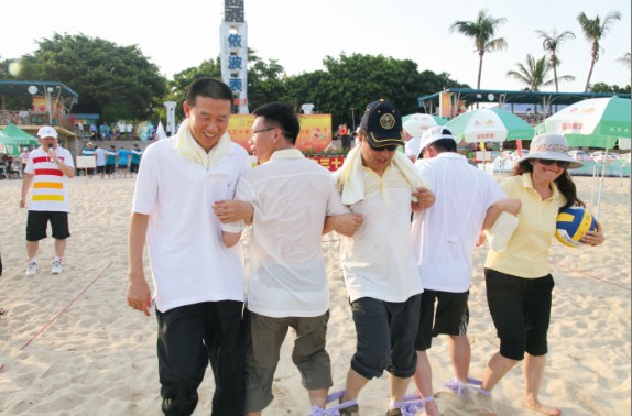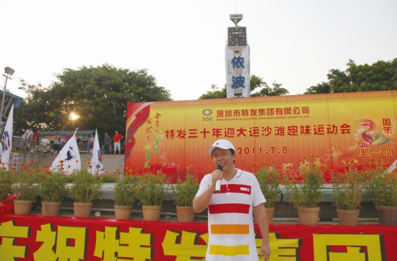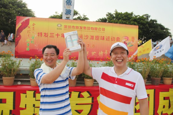 7月8日,特發(fā)小梅沙旅游中心裝扮一新,司旗彩旗迎風(fēng)飄揚(yáng),五彩鮮花競(jìng)相綻放,“熱烈慶祝特發(fā)集團(tuán)成立30周年”等祝福語(yǔ)在小梅沙酒店門(mén)口的LED大屏幕上不停滾動(dòng),到處彌漫著祥和歡樂(lè)的氣氛。下午4:30,特發(fā)30年迎大運(yùn)沙灘趣味運(yùn)動(dòng)會(huì)在美麗的小梅沙海灘拉開(kāi)帷幕。集團(tuán)總部全體員工、全資控股企業(yè)班子成員及財(cái)務(wù)負(fù)責(zé)人、參股企業(yè)特發(fā)方產(chǎn)權(quán)代表參加運(yùn)動(dòng)會(huì)。運(yùn)動(dòng)會(huì)安排了沙灘排球、步調(diào)一致和障礙接力3個(gè)項(xiàng)目;根據(jù)人數(shù)對(duì)等的原則,運(yùn)動(dòng)員分成4支參賽隊(duì)伍,即:由集團(tuán)公司領(lǐng)導(dǎo)和部門(mén)領(lǐng)導(dǎo)組成的公司一隊(duì);由集團(tuán)公司各部門(mén)員工組成的公司二隊(duì);由特發(fā)信息、小梅沙旅游中心、特發(fā)物業(yè)3家企業(yè)組成的企業(yè)一隊(duì);由特力集團(tuán)、香蜜湖度假村、黎明集團(tuán)、高爾夫、華麗公司、華明公司組成的企業(yè)二隊(duì)。