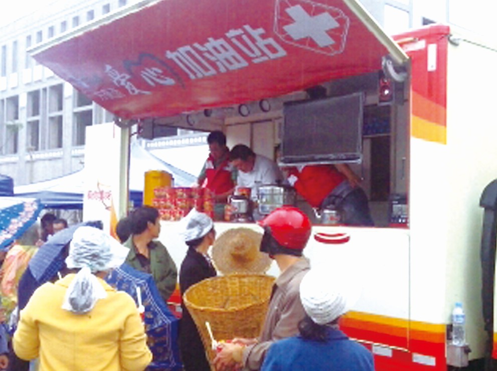 沒(méi)有休息,沒(méi)有喊苦喊累,救援小隊(duì)在經(jīng)過(guò)長(zhǎng)達(dá)9個(gè)小時(shí)的急行軍后,立刻投入到任務(wù)之中。物資裝卸中不乏重量級(jí)設(shè)備,令人精疲力盡;道路的疏通指揮也因大批沒(méi)有救災(zāi)經(jīng)驗(yàn)志愿者的涌入而令人聲嘶力竭;為當(dāng)?shù)財(cái)?shù)百高中生搭設(shè)帳篷也不是一件輕松容易的活兒;連平時(shí)在家不怎么做飯的佘仕強(qiáng)等人在震后蘆山縣卻成了掌勺師傅。在災(zāi)難中,人與人特別需要互相支持,救援小隊(duì)爆發(fā)出最大的潛力,竭盡所能地幫助災(zāi)區(qū)同胞。