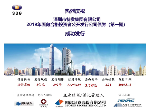 繼2019年首期發(fā)行中票后,特發(fā)集團(tuán)在資本市場(chǎng)再創(chuàng)佳績(jī),我司2019年首期公司債(3+2)年8億元于8月13日發(fā)行成功,認(rèn)購倍數(shù)2.24倍;發(fā)行利率3.78%,在2019年近半年債市的AA+企業(yè)發(fā)行利率中創(chuàng)下新低。