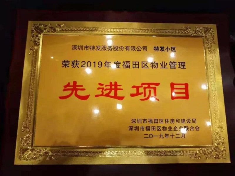 特發(fā)小區(qū)榮獲2019年度福田區(qū)物業(yè)管理“黨建+物管”先進(jìn)項(xiàng)目