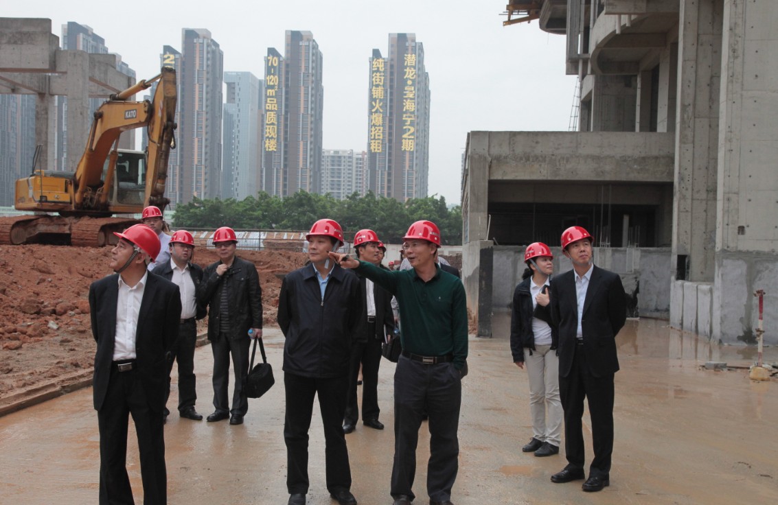 伍副主任一行首先來到項(xiàng)目臨時(shí)接待中心,詳細(xì)了解項(xiàng)目的進(jìn)展情況,隨后又親赴施工工地考察、指導(dǎo)。