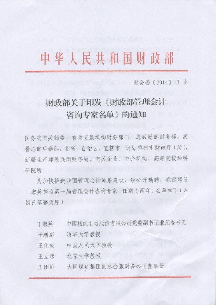 為加快推進(jìn)我國(guó)管理會(huì)計(jì)體系建設(shè),財(cái)政部于2014年3月開(kāi)始面向社會(huì)公開(kāi)招聘管理會(huì)計(jì)咨詢(xún)專(zhuān)家,經(jīng)過(guò)申報(bào)、篩選、公示等流程, 特發(fā)黎明公司財(cái)務(wù)總監(jiān)徐德勇先生等68名來(lái)自企業(yè)界、學(xué)術(shù)界、行政事業(yè)單位的專(zhuān)業(yè)人士獲聘財(cái)政部第一屆管理會(huì)計(jì)咨詢(xún)專(zhuān)家,從2014年7月起,任期2年,符合條件可連續(xù)聘任。